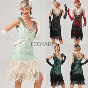 Abito di paillettes retrò europeo e americano 1920 anni medievale con nappine estate Chiffon tessuto antistatico