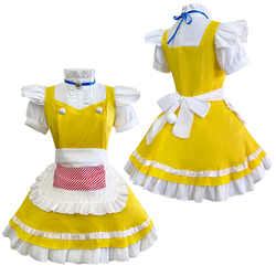Vendita diretta in fabbrica graziosi vestiti da cameriera gonna corta gialla grembiule da donna abito lungo fino alla coscia Cosplay